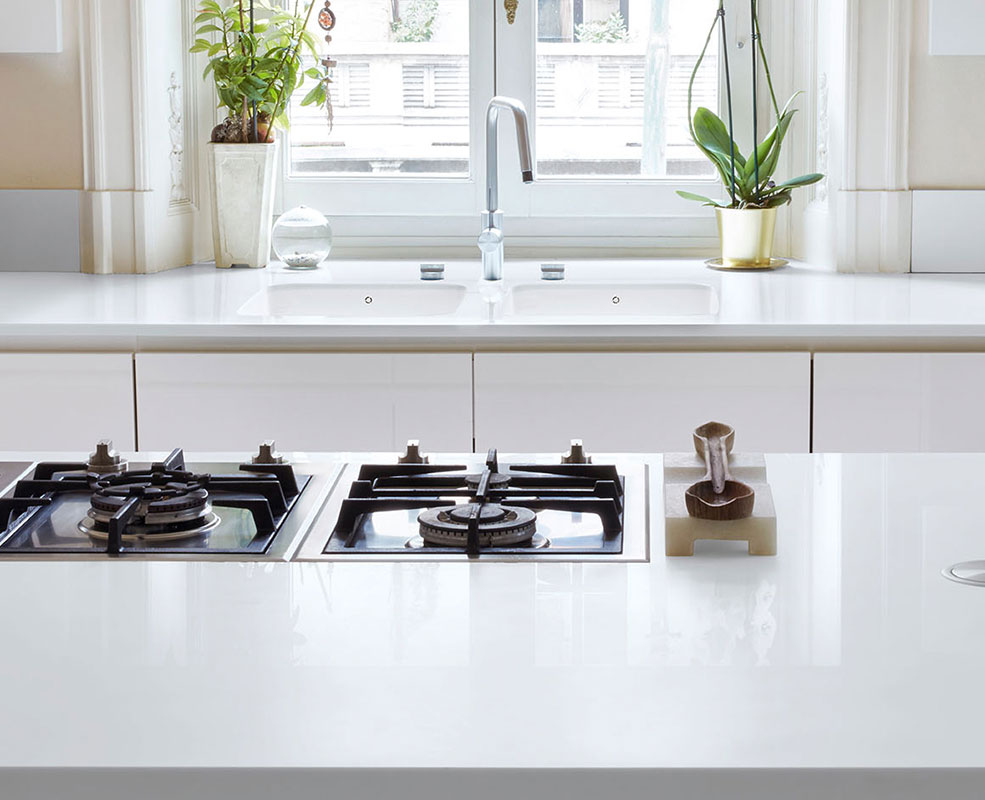 Corian Top surfaces provide limitless possibilities for creative design, closely aligned to the demands of the project thanks to its excellent feature of thermoforming. With a multitude of colors and thickness, clients can have their kitchen flooring or multiple surfaces highlighted for aesthetic pleasure.
