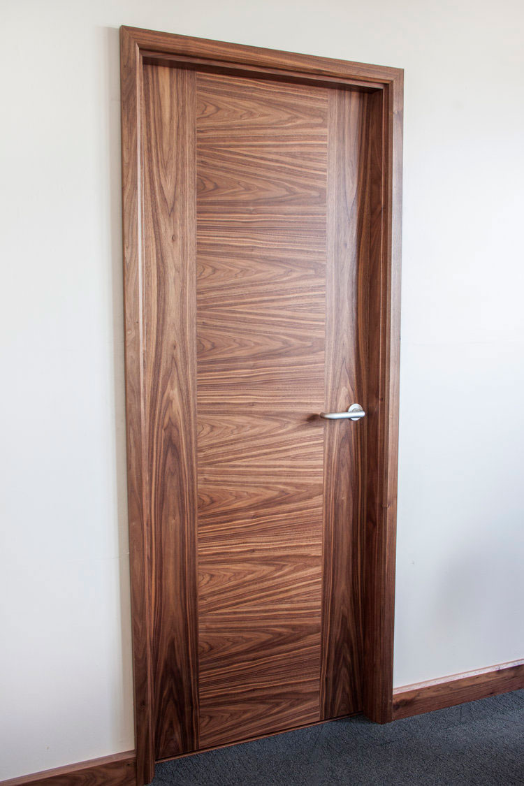 Flush doors are simple door designs that have plain facings on both sides. They can be interior (more commonly) but also exterior. They are often used where space is at a premium, and would probably be placed towards the “functional” end of the door design spectrum rather than the “style” end … but as with anything, a little imagination goes a long way! They may be kept deliberately simple in appearance to highlight other features nearby. Flush doors may have a solid, hollow or stave core. If the core is solid – low-density particle board or foam often being used to fill the space within the door completely – it may be supplemented with a type of laminate or plywood on each side. Good for exterior doors as they provide more insulation and strength.